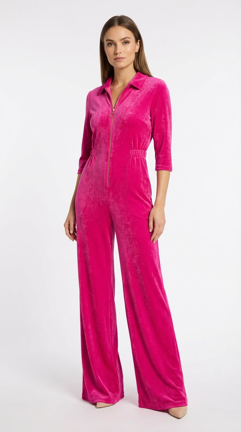 Great fun stylish velvet jumpsuit; luxurious fabric; excellent speedy delivery and service.